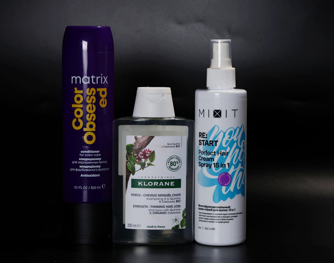 Matrix Color Obsessed шампунь и кондиционер — купила на смену фиолетовой серии. Волосы стали суше, временно я отказалась от нее. Закончился только кондиционер. шампунь пока в процессе. Понравились оба. И тот, и тот. Вероятно, что повторю. Волосы гладкие, дыбом почти не стоят (после финской серии System 4 ничего не прочесать и волосы дыбом, так что сравнить есть с чем). Эти прямо хорошие.
