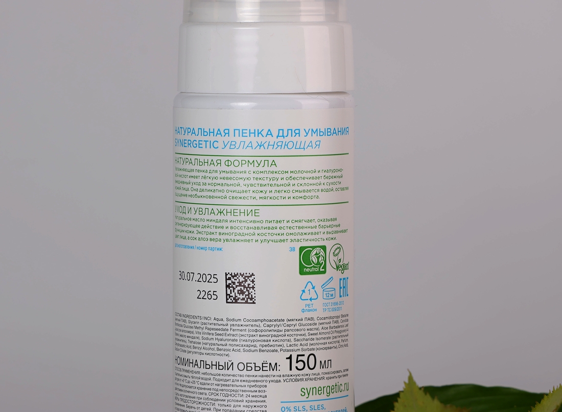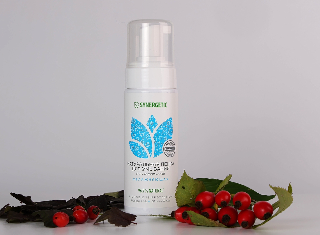 Synergetic Натуральная пенка для умывания гипоаллергенная увлажняющая