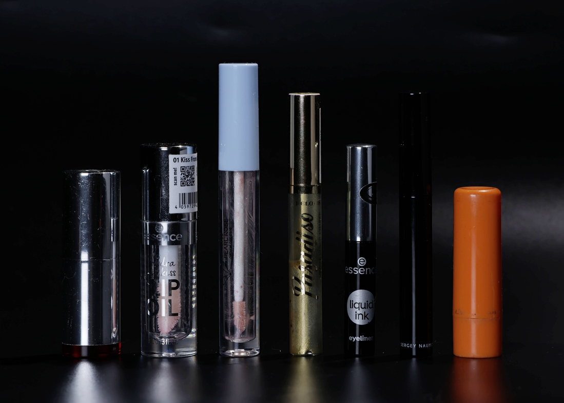 В минусе — 87 продуктов (15 помад, 8 подводок, 2 карандаша для губ, 2 карандаша для глаз, 3 монотеней сухих, 2 палетки для лица, 9 палеток для глаз, 13 блесков/масел, 12 бальзамов/гигеничек, 5 тушей, 2 хайлайтера, шиммер-спрей, 2 румян, 2 жидких теней, база для теней, пудра рассыпчатая, 3 карандаша для бровей).
