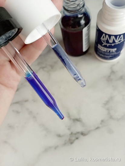 - Представляет из себя жиденький гель синего оттенка, запаха я не слышу.
