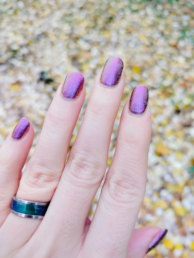 Такое вот вышло знакомство с Grattol Nail Polish Vandal Violet, немного сумбурное, но в целом приятное. Качество лака мне определенно понравилось, но со светоотражающими представителями, скорее всего, эксперименты приторможу.