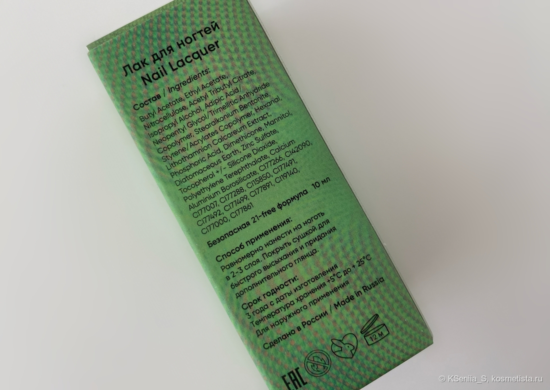 У лака прекрасный состав, безопасная 21-freе формула, он помогает укреплять ногтевую пластину, что всегда нелишне.