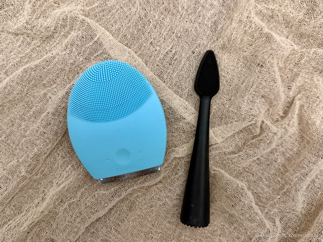 Самое главное в очищении кожи уже много лет это щеточка Foreo Luna 2 for combination skin. Пашет она у меня, кстати, уже больше 5,5 лет. Использую ее и в хвост, и в гриву, могу пройтись просто без средств по мокрой коже, могу использовать только массажный режим, приноровилась использовать ее с энзимной пудрой, чтобы наверняка.
