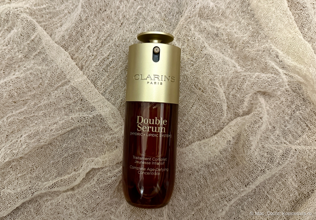 Вот Clarins Double Serum Hydric+Lipidic System моя кожа сейчас впитывает только так. Я использую его с разными кремами и тонерами, но только на ночь. Пока еще на осень днем мне жирноват.