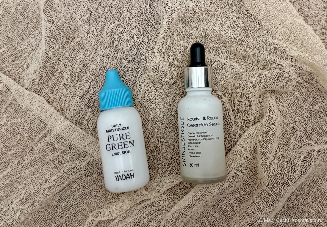 Эмульсия Yadah сама по себе слабенькая на осень. Я использую ее для мгновенное увлажнения. Типа жарко от батарей — я поливаюсь пшикалкой с водой и включаю вентилятор. После этого кожа подсыхает. И тогда меня спасает такая легкая увлажнялка.