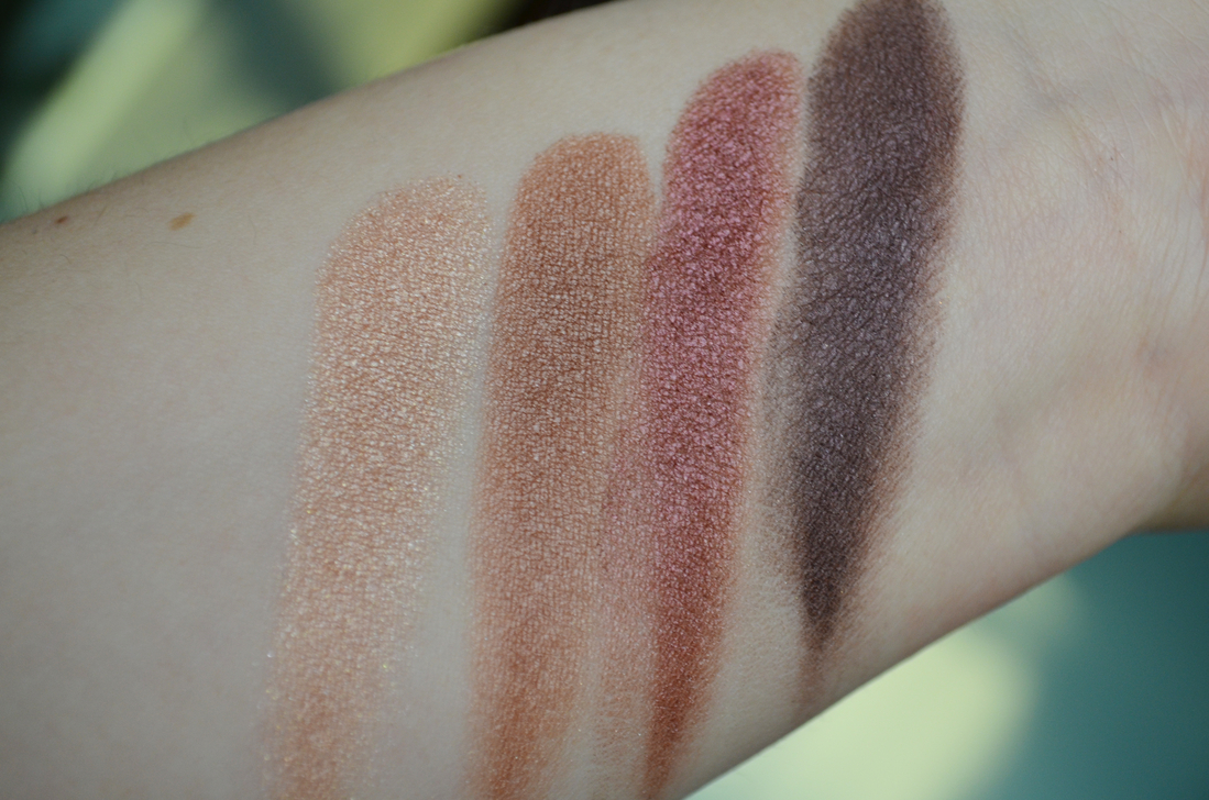 Текстура шелковистая, хоть и немного суховатая, но это просто данность, а не минус. Они тушуют сами себя — это факт! Пару взмахов кистью — макияж готов. Оттенки хорошо втушевываются друг в друга, не залипают, пятна поставить можно, но надо постараться.