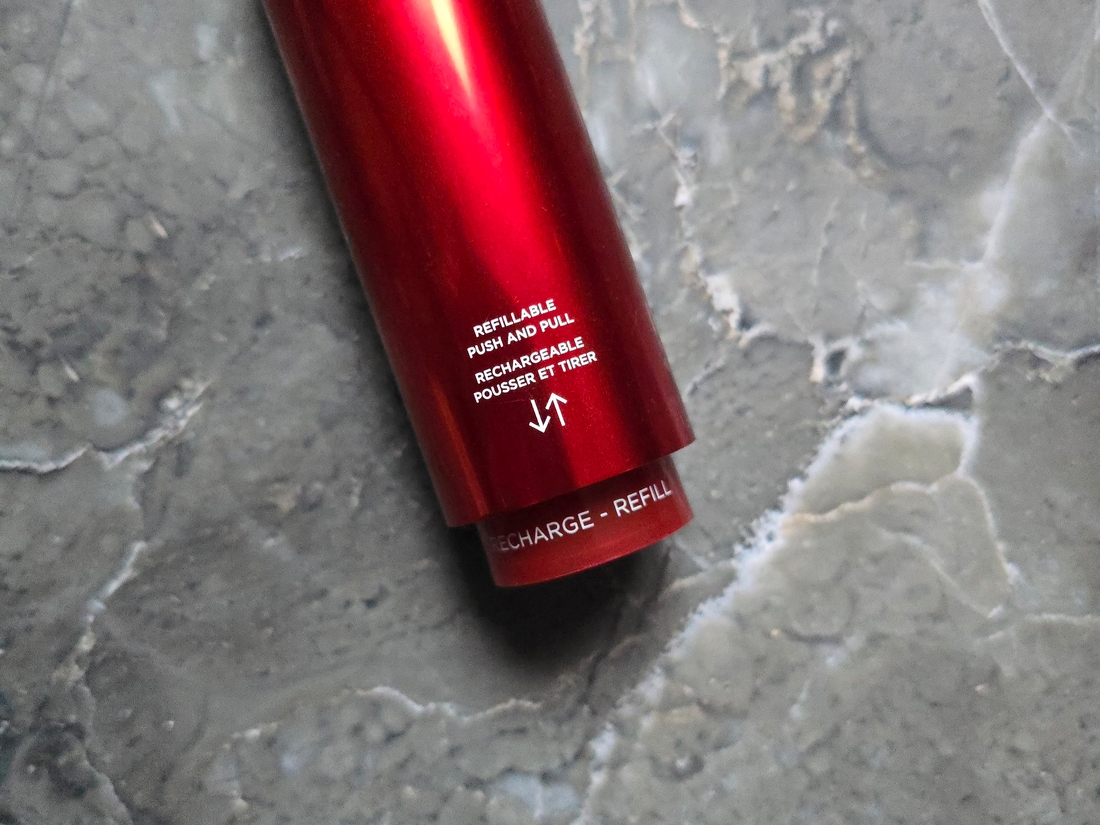 Болезненные ощущения от цены несколько сглаживаются тем, что крем, как это модно в 2k25, с рефилом. Главное, что внешний футлярчик (он алюминиевый, похоже) это позволяет: использование переносит с блеском, выглядит хорошо — не царапается и не мнётся, буквы на месте, ощущение, что хватит на 10 рефилов.