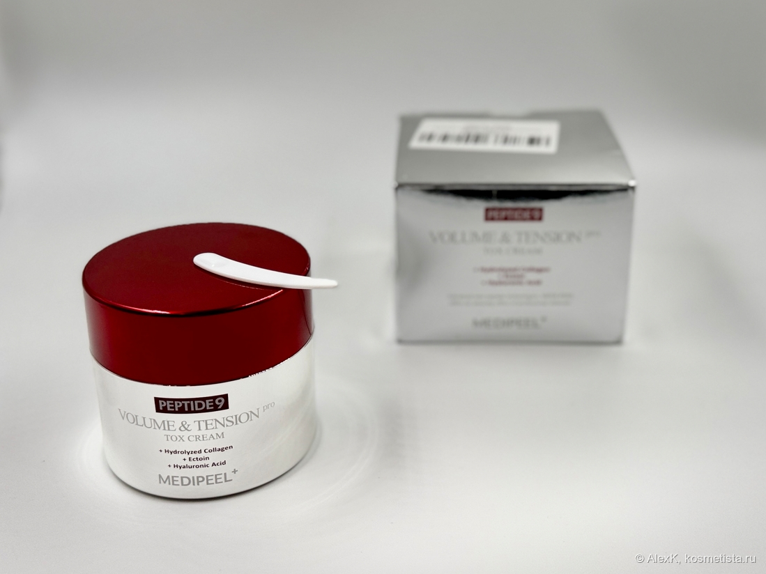 Крем для лица Medipeel Peptide 9 Volume Tension Tox Cream. Для меня крема с ретиноидами — это скорее сыворотки. Они легко впитываются, не не оставляют влагоулерживающего слоя и частенько дополнительно подсушивают. Поэтому всегда закрываю их «настоящим» кремом. Сейчас в моей рутине этот товарищ. Как это всегда бывает у Medipeel, пептиды в составе есть, но исключительно для рекламы. Основные работники банки — глицерин, ниацинамид, пантенол, аденозин, несколько экстрактов и симпатичный увлажняющий комплекс. Проще говоря, это отличный питательный, увлажняющий, восстанавливающий крем с легким эффектом выравнивания тона. И со своей задачей он справляется. А что касается пептидов, не верьте этим сказкам: минимальная рабочая дозировка — 1 ppm, а тут концентрации исчисляются в ppb. Даже если собрать их все вместе, они все равно не дотянут до минимума. Вот!