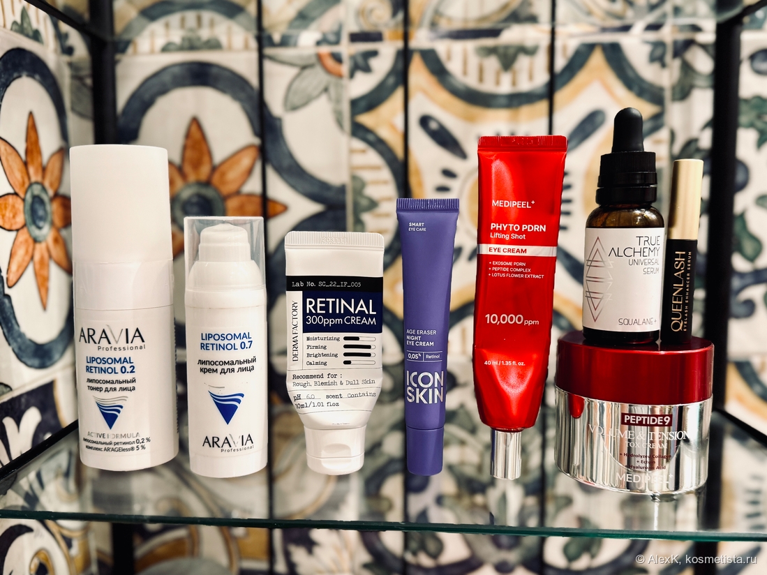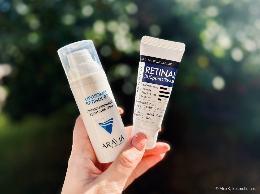 Я совмещаю с кремом Aravia Professional Liposomal Retinol 0,7%. Это еще один ретинольный добряк: работает мягко, по ходу дела еще увлажняет и смягчает. Чередую по дням со следующим кремом.