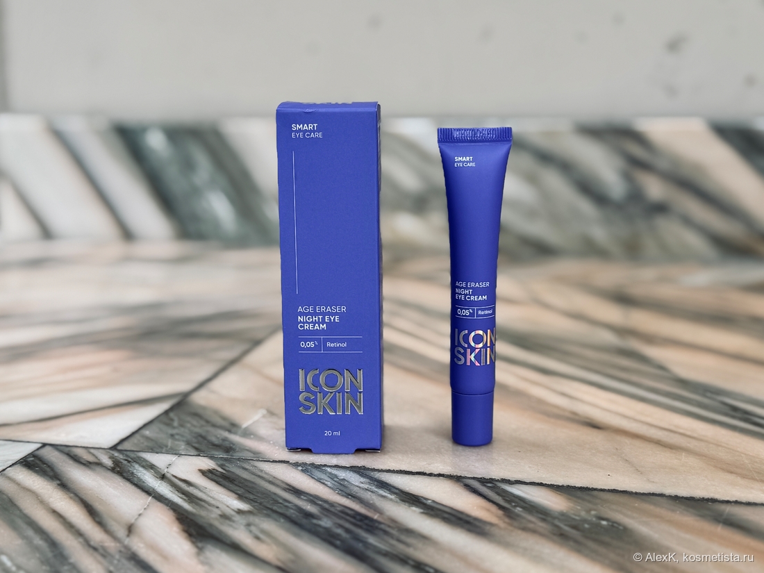 Ночной крем для век Icon Skin Age Eraser с инкапсулированным ретинолом 0,05%. Очень легкий продукт с нежной концентрацией актива — для старта сезона и новичков. Быстро и беспроблемно ввела его в уход, с сентября пользуюсь ежедневно.