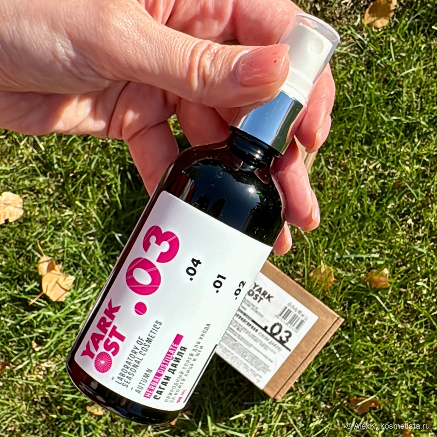 Гидролат Саган Дайля от российского органик-бренда Yarkost. В составе вода и саган дайль, собранный в высокогорье. Кажется, в Республике Тыва. Легкая водичка с антиоксидантным эффектом, быстро впитывается, тонизирует и немного подстягивает поры за счет танинов в составе.