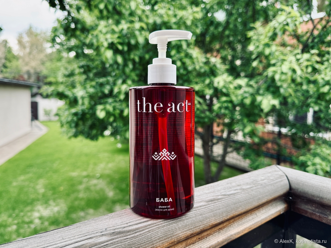 Мягкое очищающее средство для душа — сейчас добиваю The Act Баба Shower oil. Интересное масло с запахом ягод в золе. Это мой первый дымный аромат, так что было любопытно.