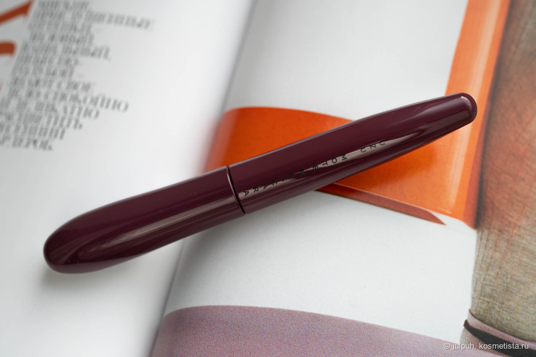Флакон тушь имеет приятную скругленную форму, он чуть меньше привычного нам размера. Выглядит опрятно и не занимает много места. Покрашен в цвет самого продукта, что всегда тоже плюс.