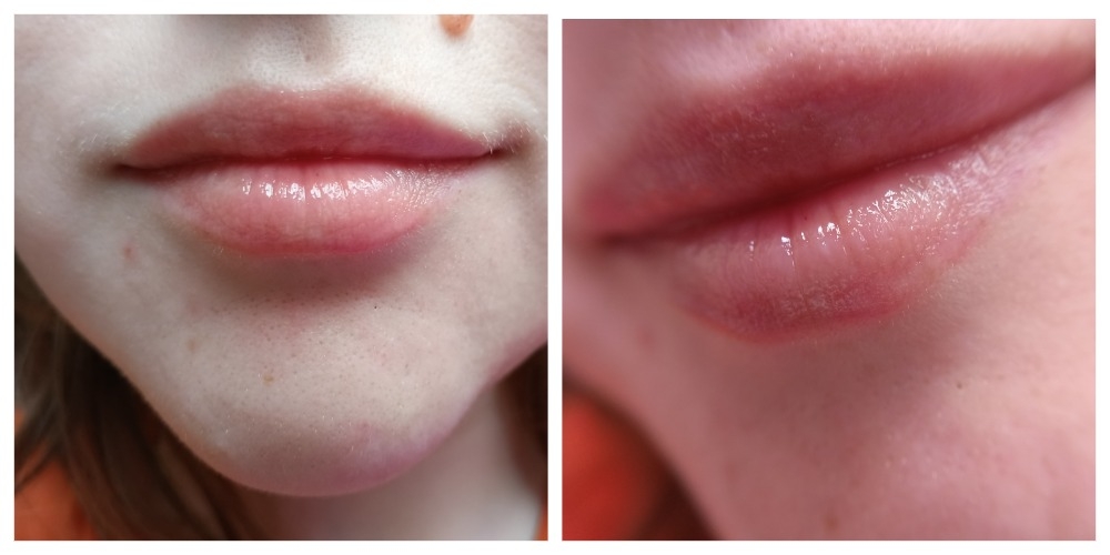 На губах бальзам лежит хорошо. Не подчеркивает рельеф, не скатывается в светлые полоски. Я бы сказала, что он скорее питает и защищает губы, нежели увлажняет. Но губы с ним остаются в хорошем состоянии и отлично защищены от непогоды. У бальзама есть деликатный глянец, который долго не тускнеет. А за счет липкости, он более стойкий, и может пережить чашку чая с печенькой.