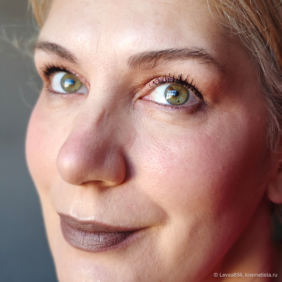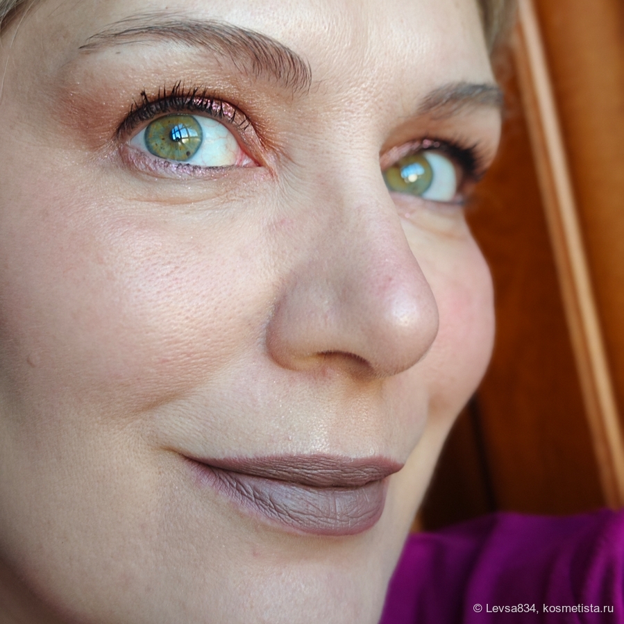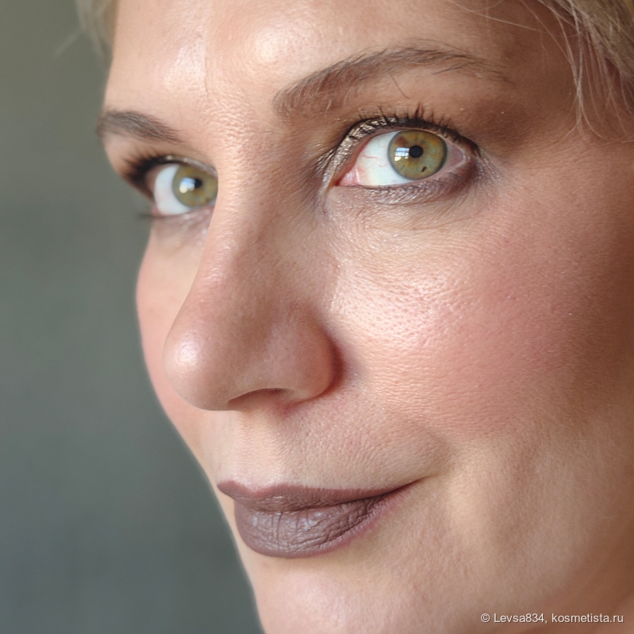 Если нанести помаду ещё более плотно, то она, в зависимости от всего макияжа, подстраивается под общий тон и кажется то более серой, то более коричневой.