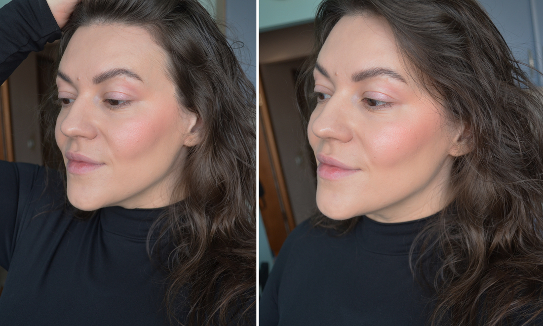 Ну ладно, тут я нанесла румяна на тон, в следующий раз попробуем на припудренную кожу — возможно, это изменит ситуацию.