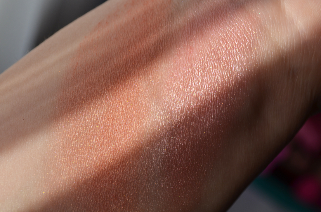 Это красивый персиковый оттенок с большим, прям вот большим, количеством шиммера. С такими румяна никакой хайлайтер не нужен!