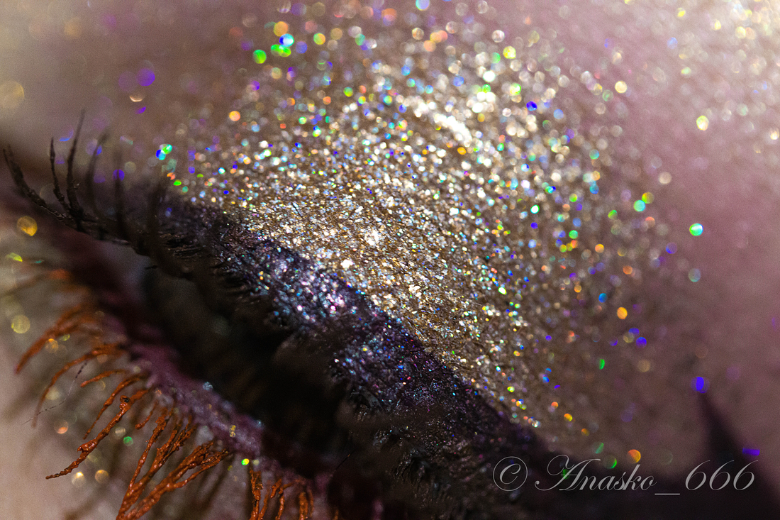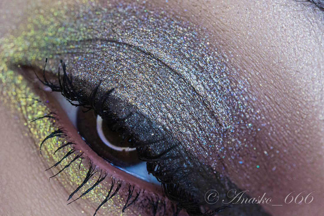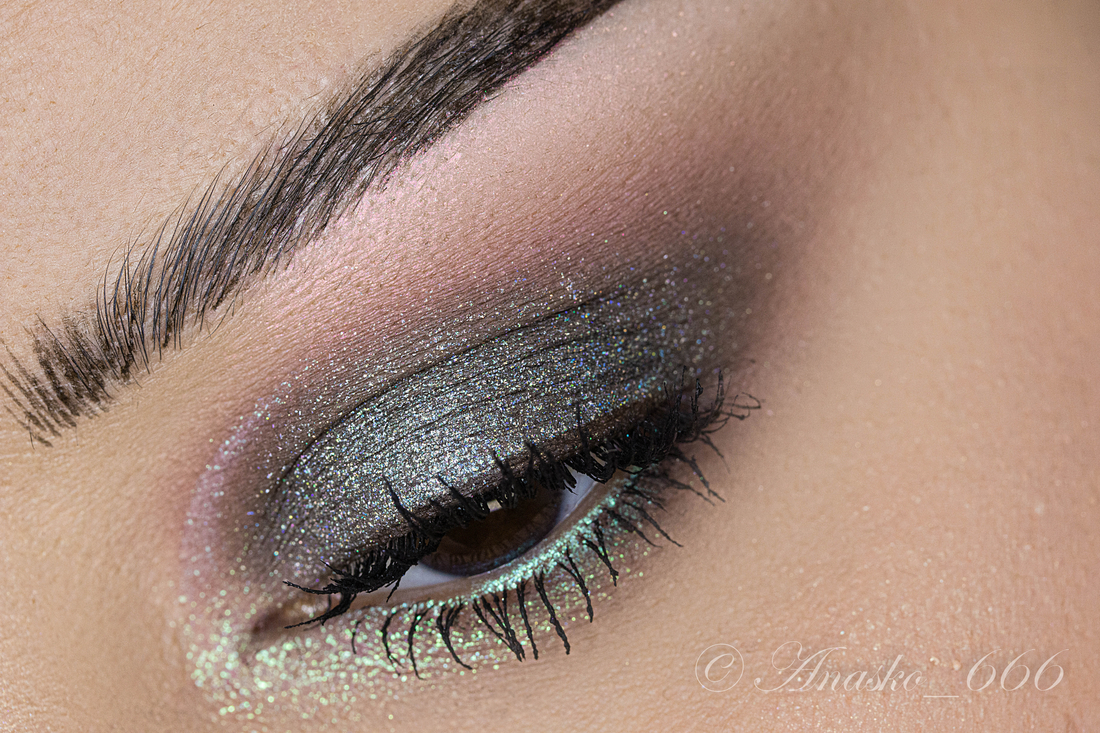 У меня уже было два поста на эту серию: фиолетовый и синий. В них я подробно прошлась по поводу такоц мелкой голографии в продуктах для глаз и что я таком думаю в принципе.