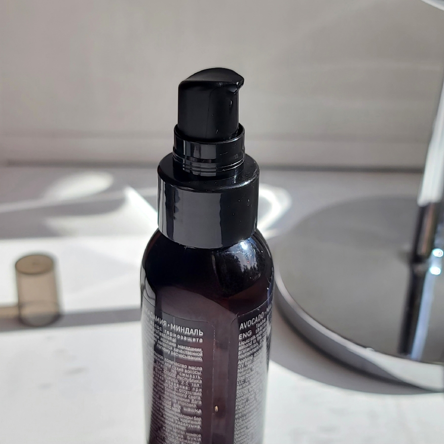 Масло выпускается в тёмной-коричневой бутылочке объемом 100 мл с удобным дозатором-помпой. Такая упаковка не только выглядит стильно, но и защищает состав от света, сохраняя его свойства.