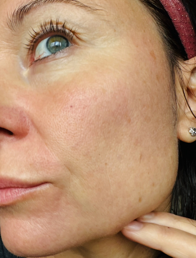 И вот так при нанесении средства. Вообще, такое лёгкое покрытие просто идеально летом, когда совершенно не хочется перегружать кожу и не хочется ощущать парниковый эффект на лице.