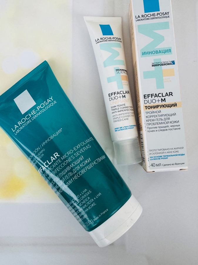 Я очень люблю косметику La Roche Posay и практически всё, что я пробовала, мне подошло идеально. И сегодня хочу рассказать ещё о двух продуктах. Это микроотшелушивающий очищающий гель для кожи с выраженными несовершенствами La Roche-Posay Effaclar Gel Purifiant Micro-Peeling и тройной корректирующий тонирующий крем-гель La Roche Posay Effaclar Duo+M gel
