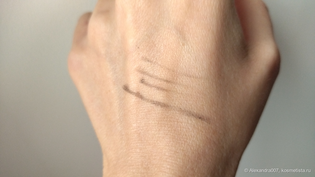 Хорошо рисует как тонкие линии, так и плавно растушевывается. Заявлен waterproof и сидит дейтсивтельно весь рабочий день. хотя лоб остается сильно жирной зоной даже в холодный сезон