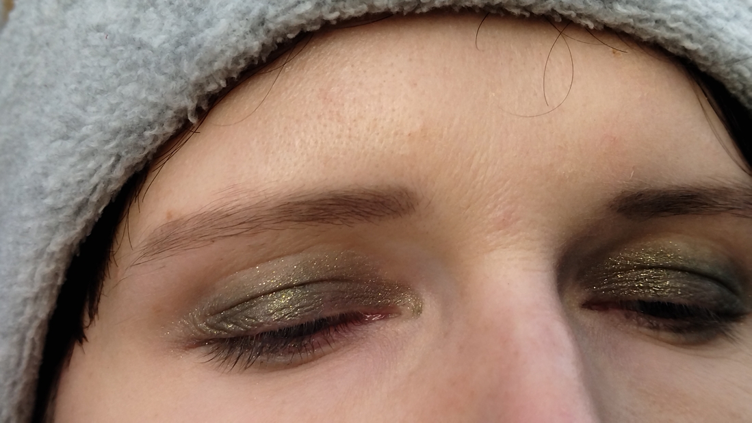 Оттенок шоколада, мягкий холодный коричневый. Им уже можно более контрастную внешность создать, но я использовала его летом, когда присутствовал легкий загар.