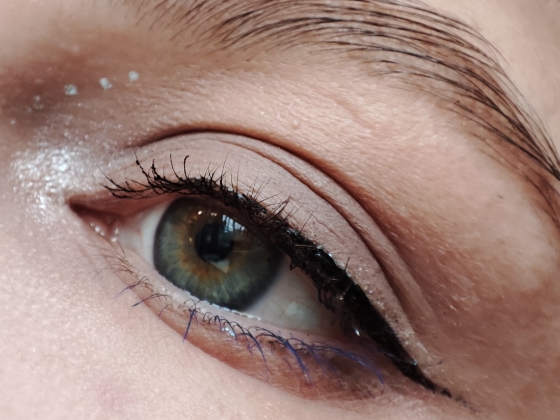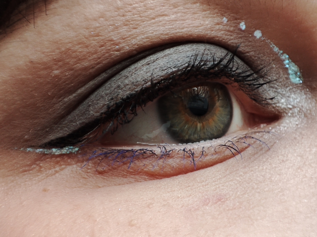 Добавим немного подводки, цветную тушь на нижнее веко и получаем вечернее, нежно сверкающее.