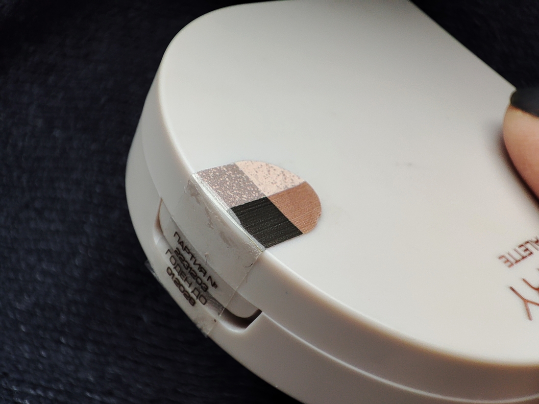 Была надёжно защищена скотчем с цветной печатью и выбитым на нем сроком годности. Так что, если этот скотч вдруг случайно выкинули, палетка у вас никогда не испортиться.