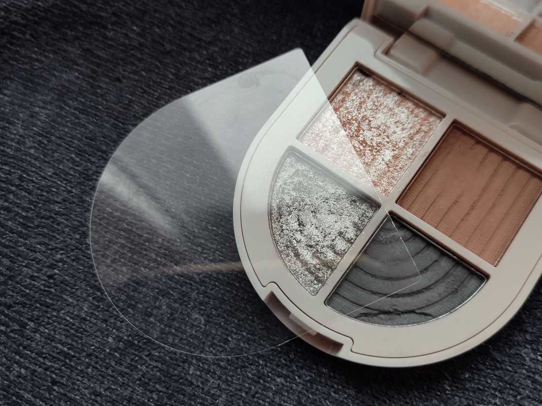 Понять, что за оттенки нас ждут внутри, можно только по тому кусочку скотча с печатью, который мы уже выкинули. В палетке всего 2.8 гр теней, где-то +- 0.7 гр на рефил.