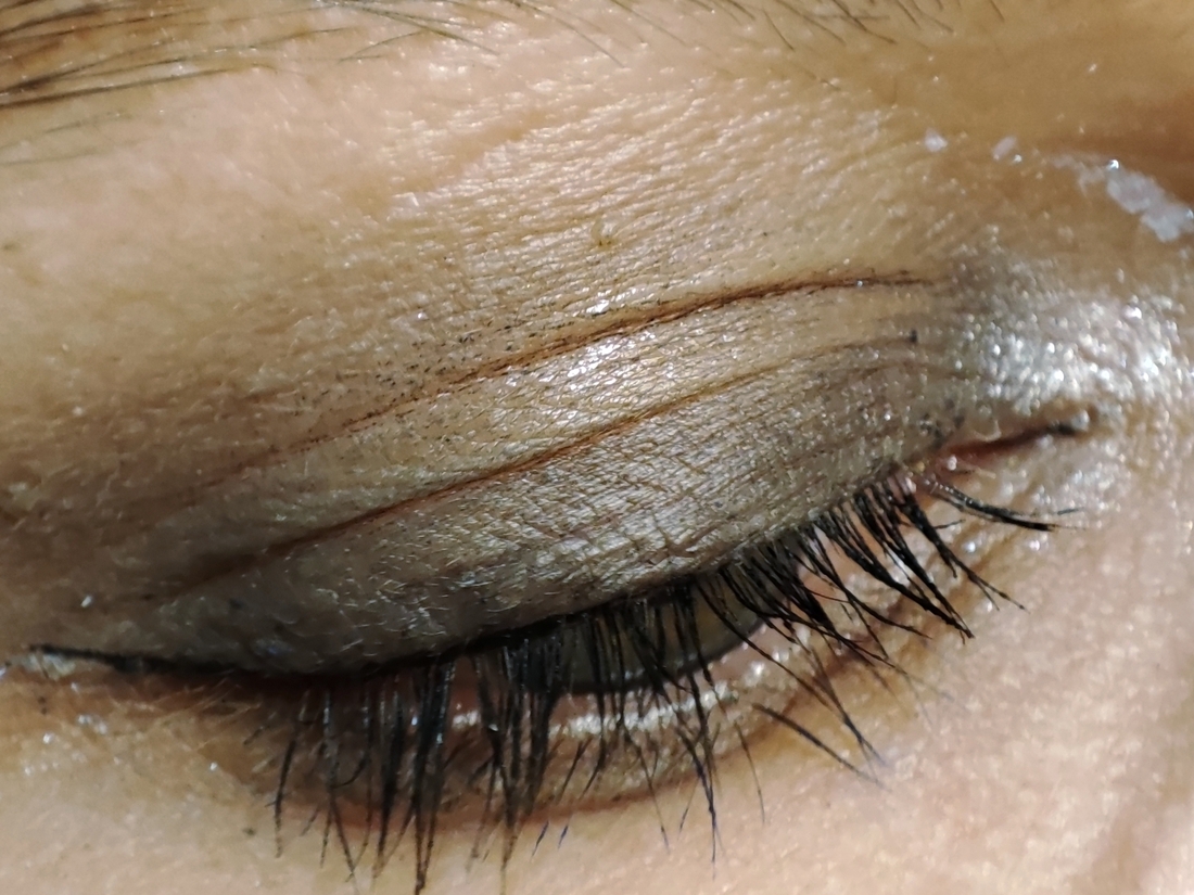 А так скатались тени на моих веках к концу вечера. Это был первый тест, наносила без базы. Осторожно, дальше идет одно некрасивое фото.