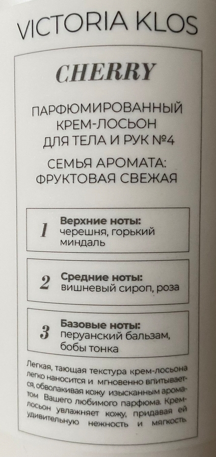 Victoria Klos Парфюмированный крем-лосьон для тела и рук №4 Cherry Perfumed Cream