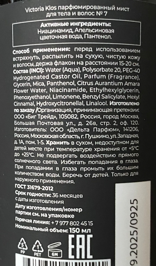 Victoria Klos Парфюмированный мист-шиммер №7 Perfumed Shimmer