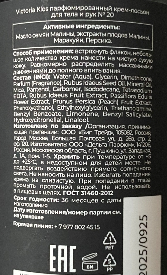 Victoria Klos Парфюмированный крем-лосьон для тела и рук №20 Glow Cream Shimmer