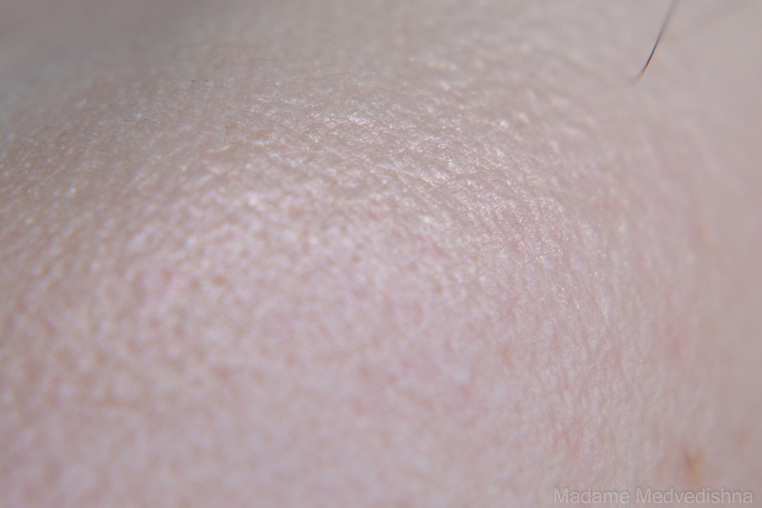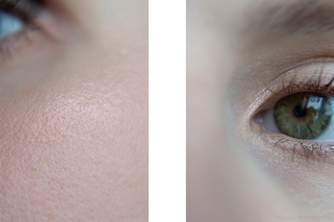 Из-за мелкого помола и отсутствия крупных частиц отлично уводится в кожу. Белой базы нет, поэтому коже придаёт только сияние без выбеливания.