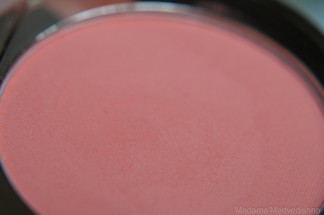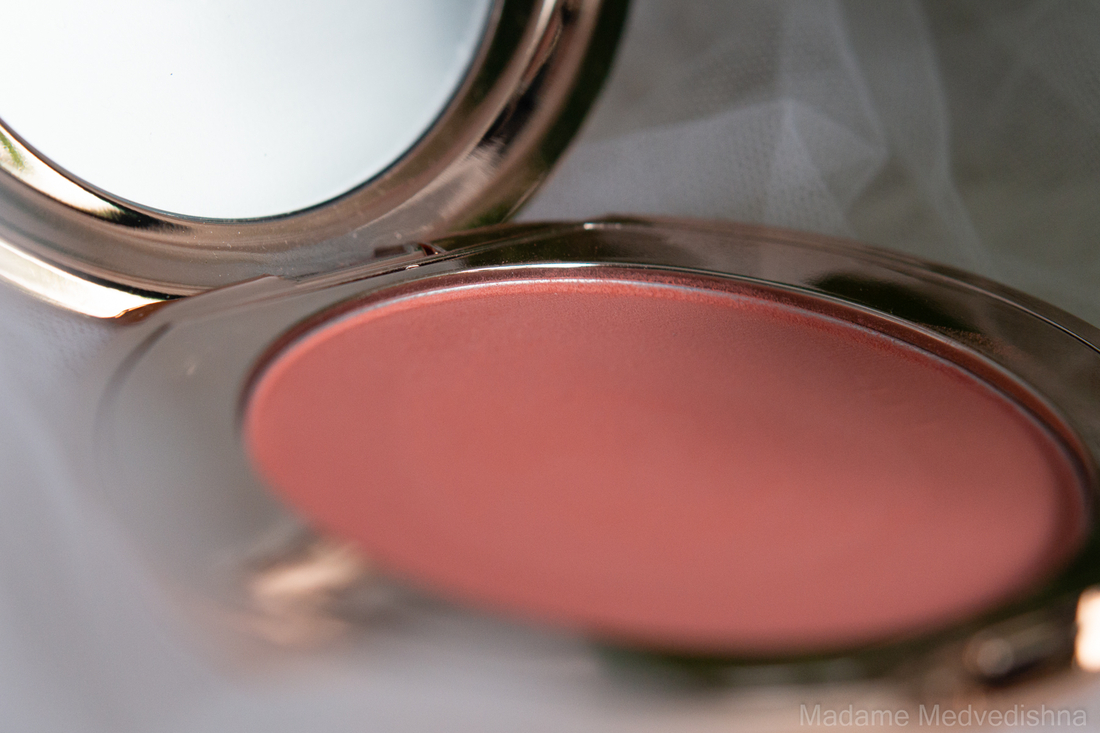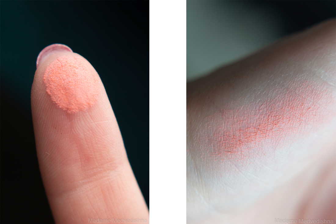 Производитель обещает нам матовый финиш, стойкость и персиковый оттенок, а так же отсутствие осыпания и пыления. Оттенок я бы назвала персиково-коралловым: универсальный нейтральный цвет (ближе к тёплому), подходящий под большинство макияжей. Румяна глубоко матовые без малейшего сияния и блеска.