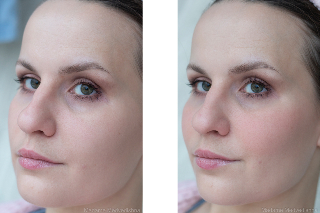 На лицо ложатся аккуратно, не пятнят, наслаиваются и тушуются хорошо, в кожу уводятся отлично.