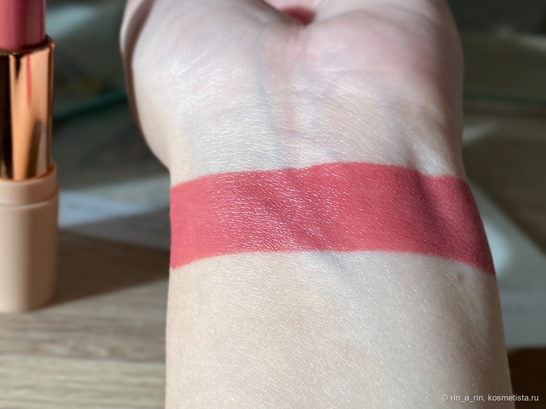 А эти фотографии — в комнате с большим количеством дневного света. Как по мне — оттенок помады существенно не меняется при разных условиях освещенности.