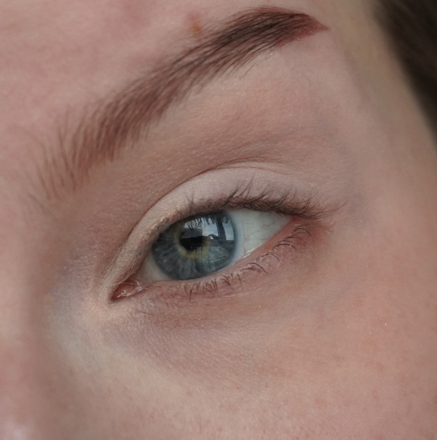 - Затем бежевым оттенком из палетки теней Anthemy Jade Rabbit плотно прошлась по всему верхнему веку.