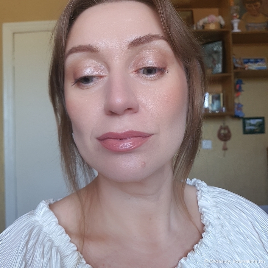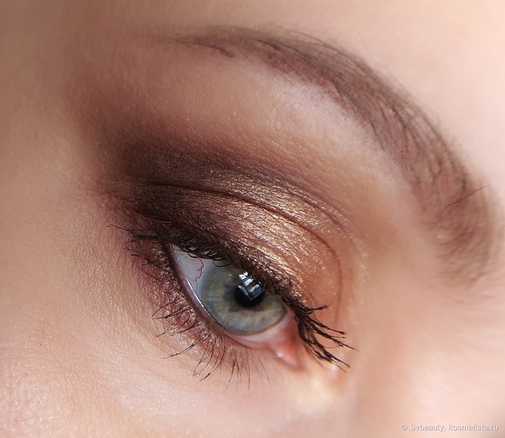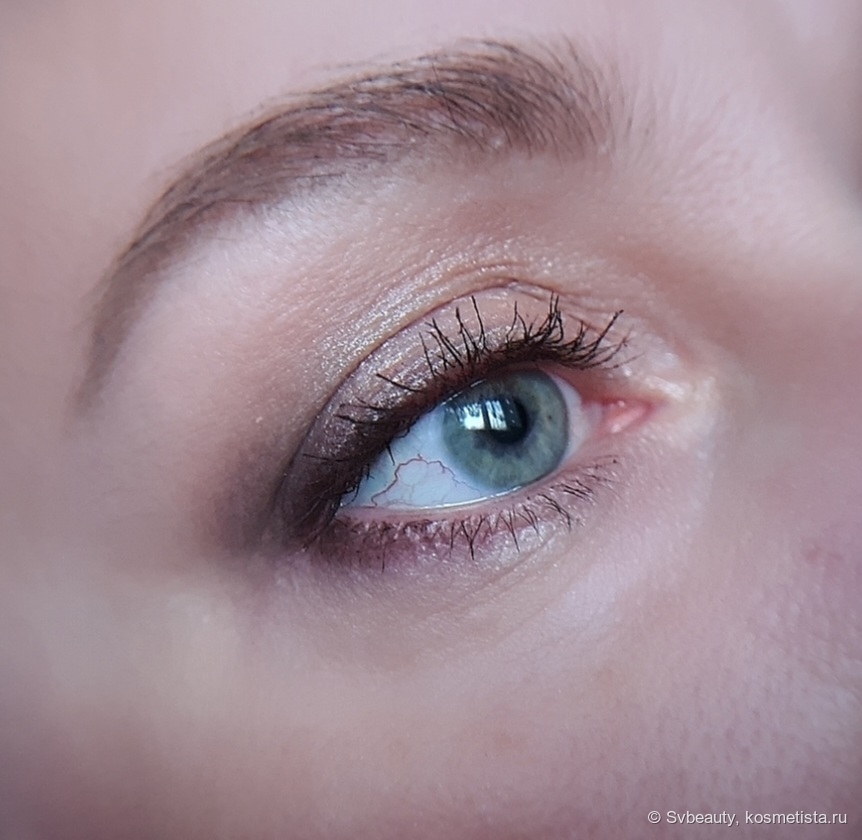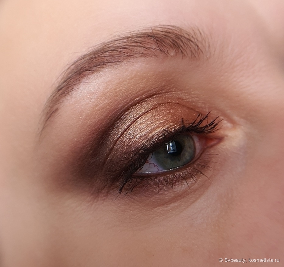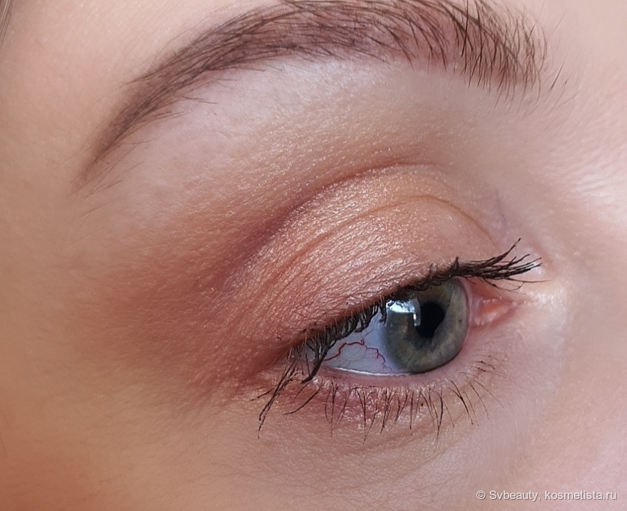Он хорошо пигментирован, но его финиш настолько деликатный и легкий, что оттенок кажется не слишком насыщенным. Хотя в макияже при наслаивании на мне он смотрится довольно насыщенно и ярко. Также оттенок можно растушевать легко в дымку.