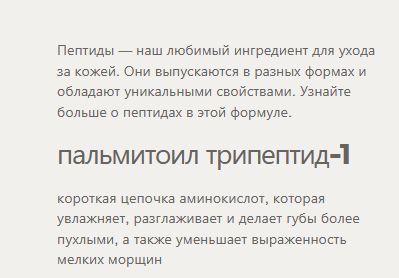 Формула у блеска веганская, блеск не тестируется на животных, а активным веществом является пальмитиол трипептид один.