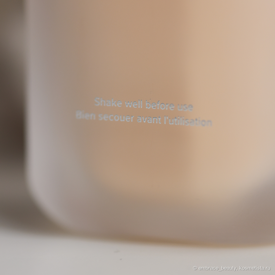 Очень часто повторяется надпись " Хорошо встряхнуть" и, видимо, это реально очень важно для качественного нанесения продукта на лицо.