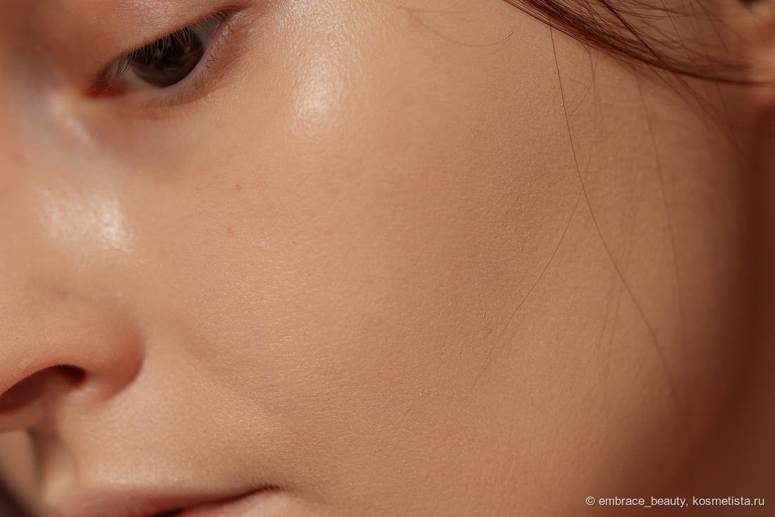 В результате получилось очень естественное покрытие, которое скрыло цветовую текстуру кожи и сделало оттенок лица ровным: