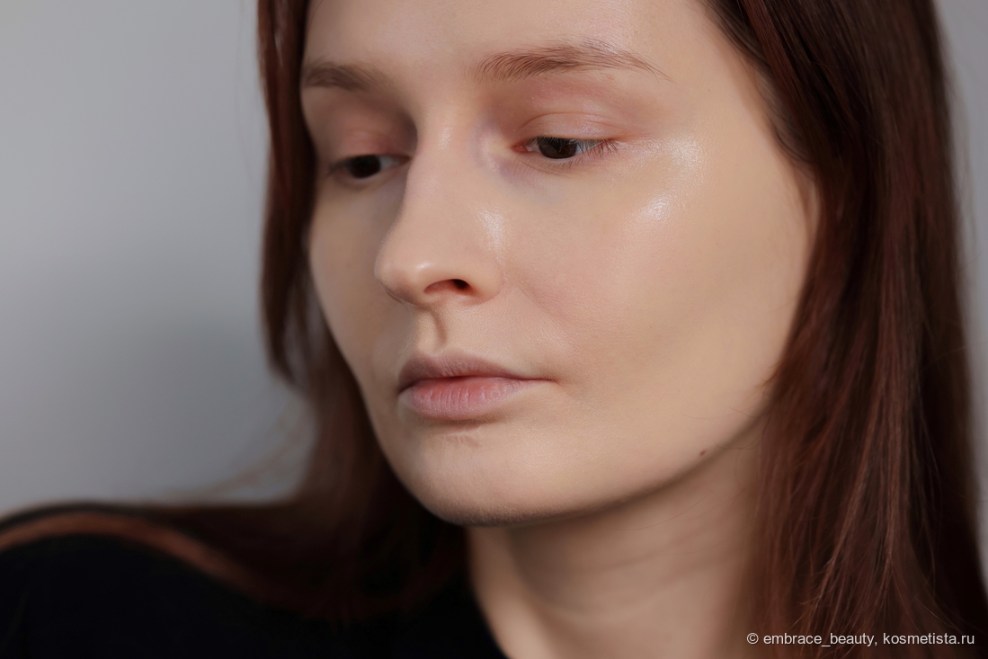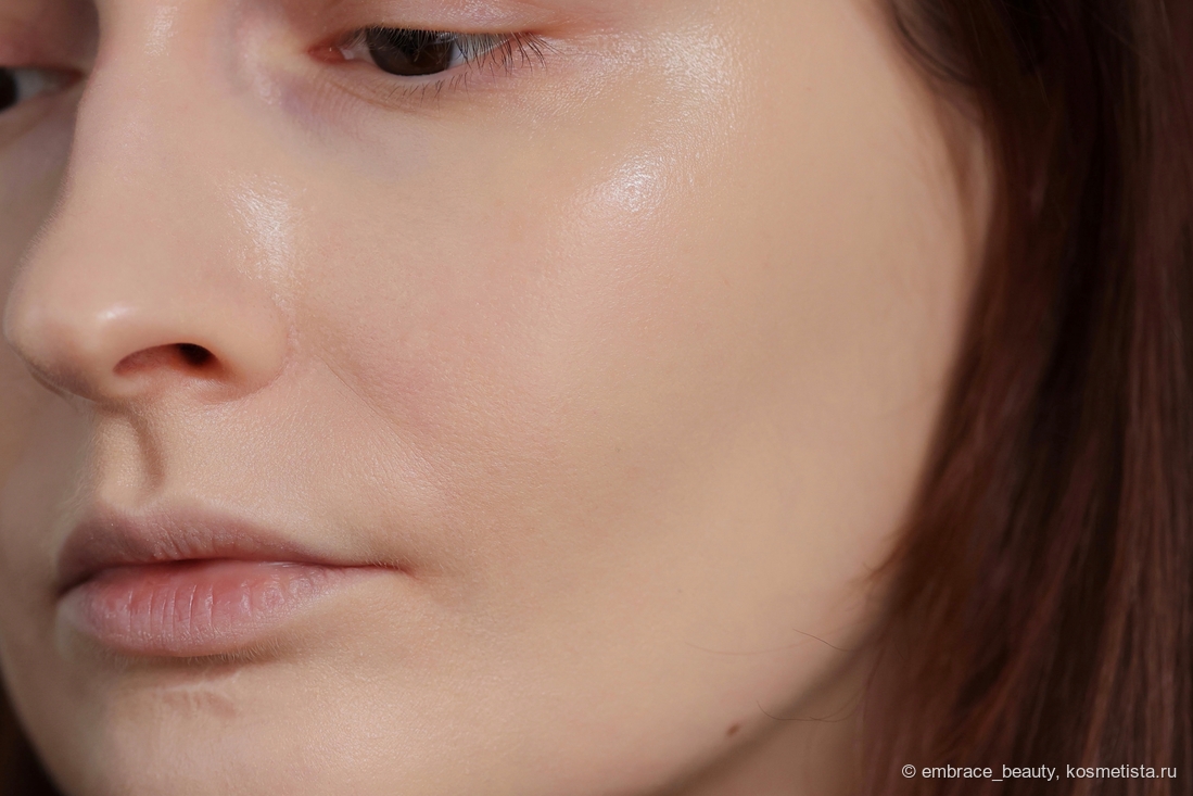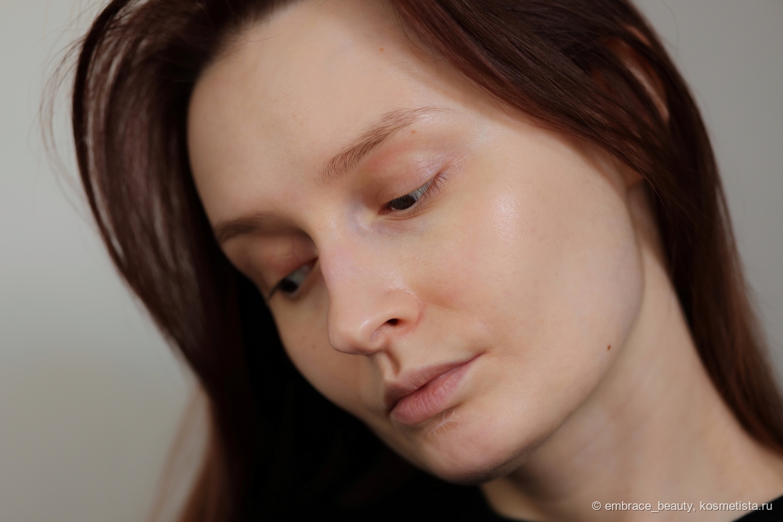 Если бы я не знала, что на лице есть тон я бы подумала, что на лице либо вообще ничего нет, либо кожа прибита легким слоем прозрачной пудры с сиянием, по типу Аурглас.