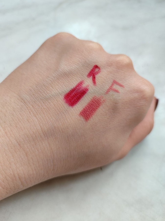 Текстура достаточно сухая, но при этом позволяет достаточноплотно нанести карандаш на всю поверхность губ. В качестве контура я обычно карандаши не использую: просто считаю их лишними в ежедневном макияже и в моей косметичке. При наслаивании может давать неоднородный тон, поэтому лучше наносить сразу аккуратно.