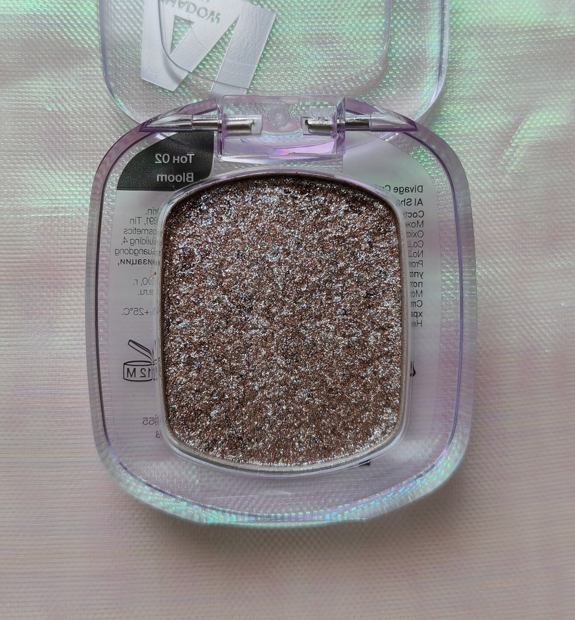 02 Bloom — это сиренево-голубо-серебряные блестки на розово-коричневой базе.