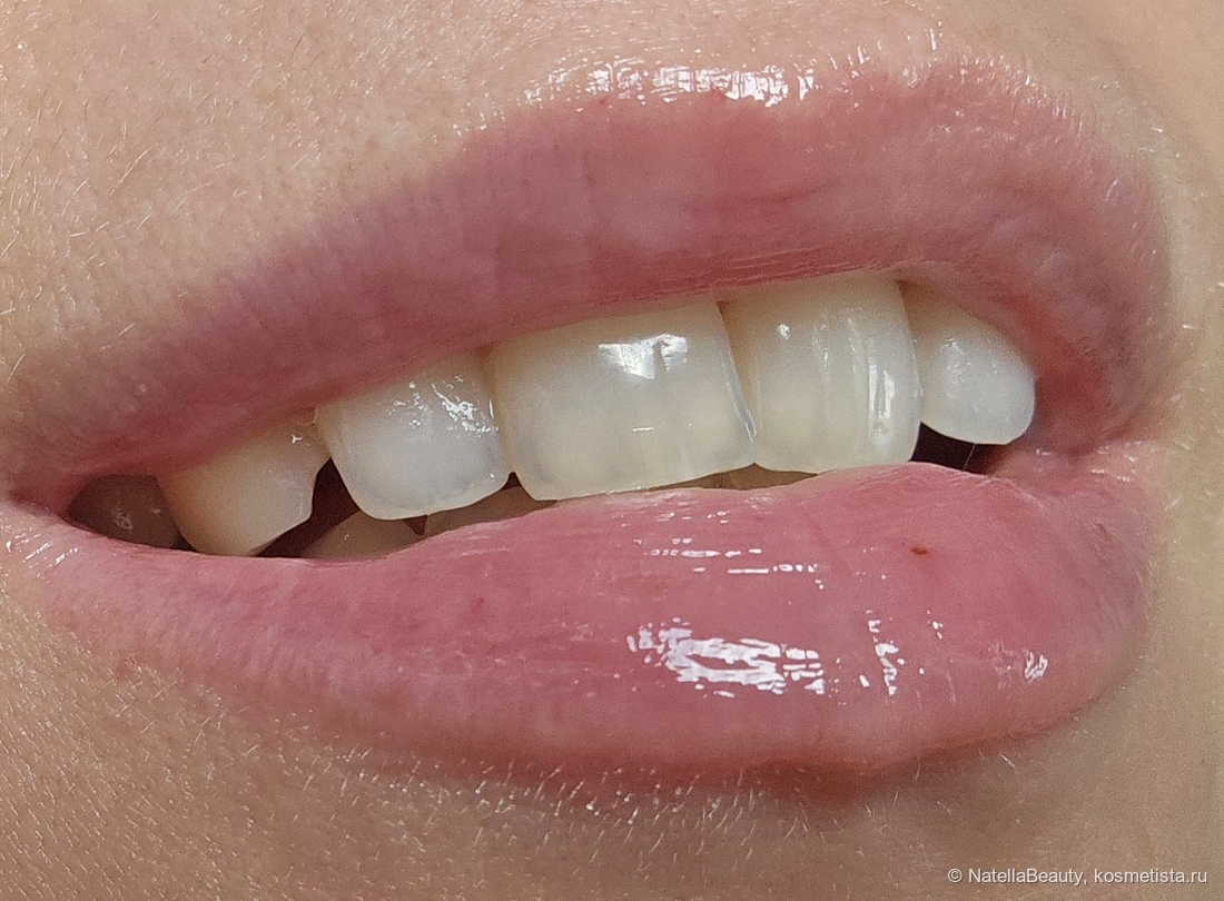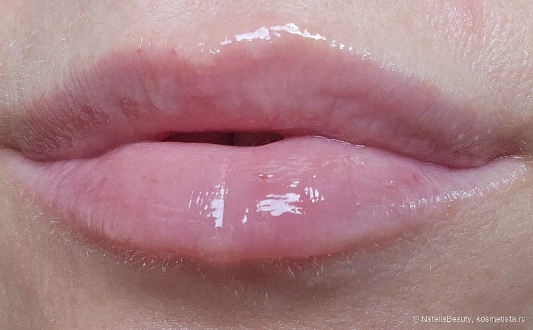 Текстура обволакивающая. Немного ощущается на губах, но очень комфортно. Буквально моментально напитывает их и разглаживает, скрывает шелушения и корочки.