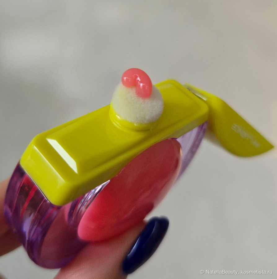 Бальзам находится в плоском круглом футляре, выполненном из пластика. Упаковка прозрачная, сиреневого оттенка. В середине круглая силиконовая часть, в нее как раз и налит продукт. Поступление бальзама регулируется нажатием на силиконовую часть упаковки.