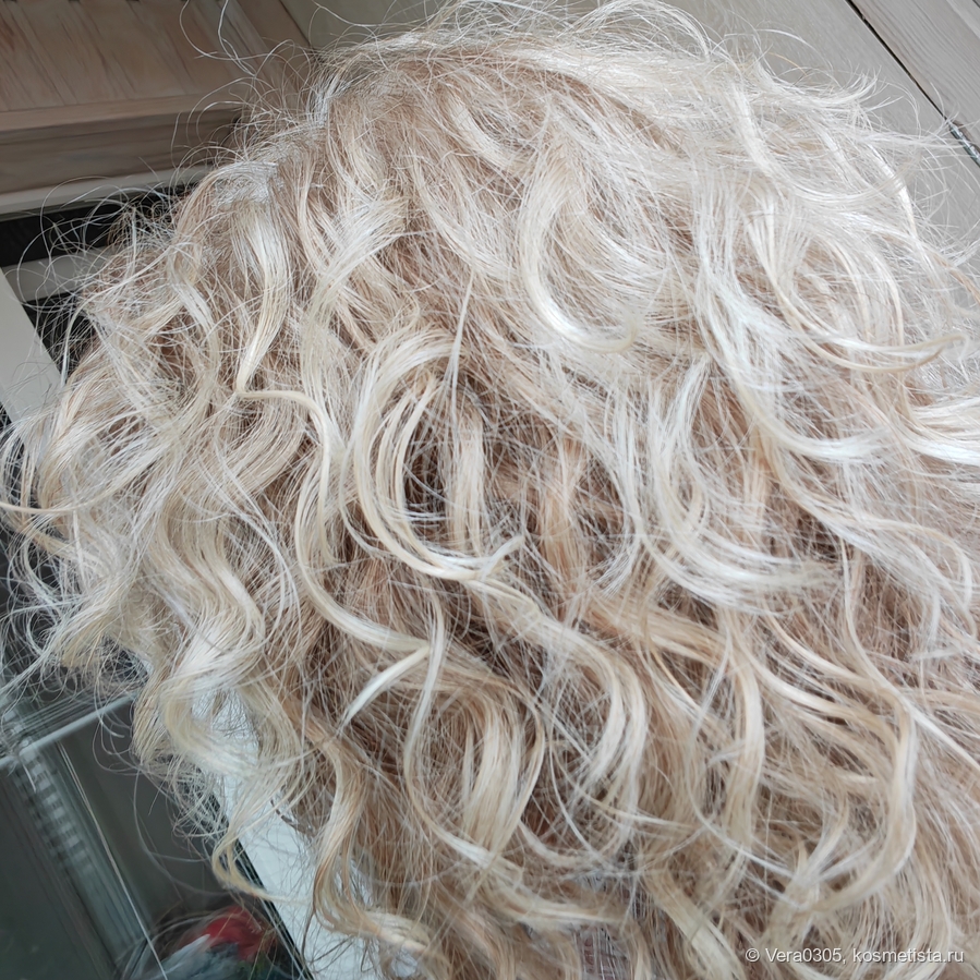 На макушке отросшие антенки всё же пробиваются, но маску я наношу, отступая от корней, антенки не захватываются. Волосы по длине не пушатся, а организованно вьются. Выглядят живыми, на ощупь тоже шелковистые, эластичные.