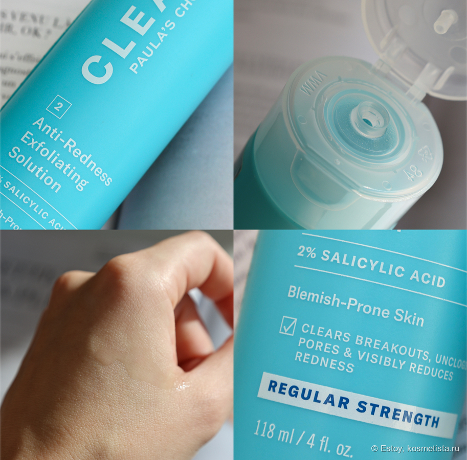 У бренда несколько эксфолиантов с салициловой кислотой: CLEAR Extra Strength 2% BHA для постоянных угрей и прыщей (часть 3-ступенчатой системы лечения акне), легкий Daily Pore-Refining Treatment With 2% BHA для ежедневного использования, 2% BHA Liquid Exfoliant — для мощного и глубокого отшелушивания и Regular Strength Anti-Redness Exfoliating из поста, который подходит для чувствительной кожи и легких высыпаний.